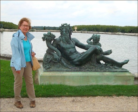 at the windswept lake of the Palace of Versailles, France